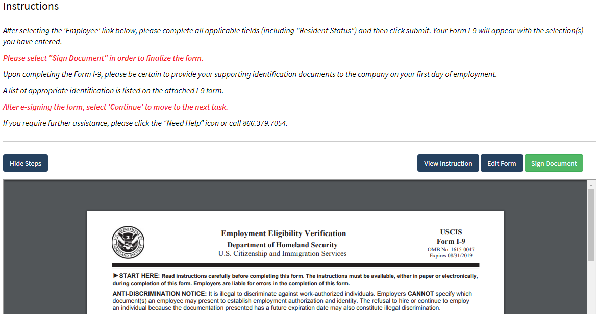 - The system will then prompt you to review and sign the document; click on “Sign Document” at the top of the form.